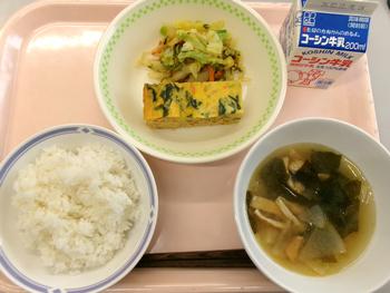 ご飯 千草焼き 海苔あえ みそ汁 牛乳 |