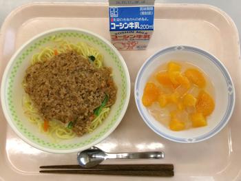 ジャージャー麺 フルーツポンチ 牛乳 |
