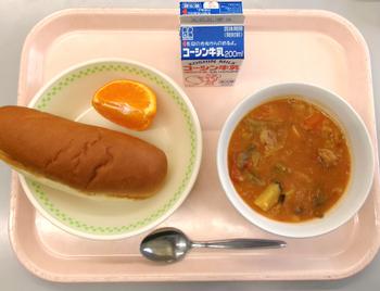 豚肉とれんこんのカレー 和風サラダ 牛乳 |