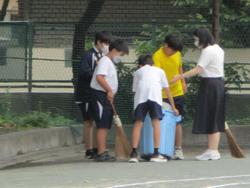 5月30日朝、JRC委員を中心に生徒に呼びかけ、運動会前に校庭などの清掃を行いました。学校を自分たちの手できれいにしようという取組です。多くの生徒が参加しました。