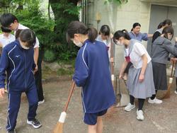 JRC委員主催によるたんぽぽ庭園清掃を行いました。45人の生徒がボランティアとして主体的に取り組み、落ち葉掃きを行いました。清掃後は見違えるようにたんぽぽ庭園がきれいになりました。