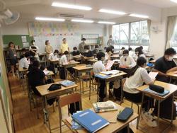 中国・通州区訪問団ご来校 午後、通州区長をはじめとする6名の訪問団が本校を訪問されました。英語の授業のほか、音楽や国語、保健体育などの授業もご覧いただきました。今後のオンライン交流や入試に関することなどについてご質問がありました。区長からは「子どもたちが幸せそうな学校ですね」との温かいお言葉をいただきました。(11/6 15:25更新) |
