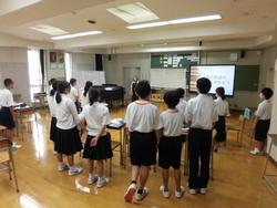 C組授業の様子(社会科) 社会の授業では勘合貿易について学習をしています。実際にイメージをつかむために、C組の教室でもやってみました!自分の持っている勘合と合う物をクラスの誰かが持っています。うまく合わさると文字が浮かんできます。(10/15 9:45更新) |