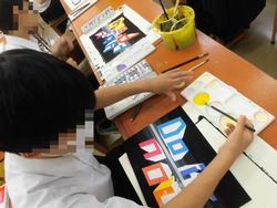 C組授業の様子(美術科) C組では毎週木曜日の5・6時間目に2時間続けて美術の授業が行われています。自分らしい作品作りを行うためにそれぞれが集中して作品制作に取り組みます。 今回完成したのはランプシェードです。デザインを自分で考え、その模様をカッターで細かく丁寧に切っていきました。室内の電気を消して明かりを灯すと、温かく優しい光がオリジナルの模様から差し込みます。(10/8 8:50更新) |