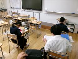 テスト前の追い込み 今日と明日は定期考査です。現在は理科に取り組んでいる時間です。朝8時前に校内をまわっていると、一生懸命勉強している生徒の姿がありました。マーカーや下敷きを使い、懸命に暗記に励んでいました。(9/25 11:16更新) |