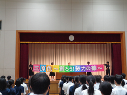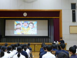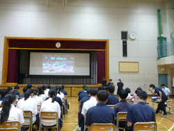 生徒会役員選挙 後期の生徒会役員を決める選挙が、6時間目に行われました。今日までの間、候補者とその応援責任者は、朝の登校時間や給食の時間に選挙活動を行ってきました。今日は全校生徒の前で自身の公約を話し、生徒会活動への意気込みを伝えてくれました。 |