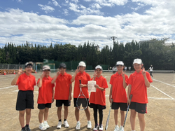 ソフトテニス部秋季区大会 「まずは1勝」「先輩に続き都大会へ進もう」そんな言葉を投げかけながら臨んだ秋季区大会、9月7日~21日まで戦いました。結果は、個人、団体とも都大会へは進めずしたが、区大会では、男女ともチャンスは大いにあり、あと1歩、前でとれば、ポイント出来たという場面も数多くありました。大会後のミーティングでも、選手たちから多くの反省が出ました。これを次の大会につなげてほしいと思います。 次の大会は12月。選手たちは、きっと成長して、強くなってくれるでしょう。 連日応援に駆けつけてくださった保護者の皆様、ありがとうございました。 (9/22 17:05更新) |