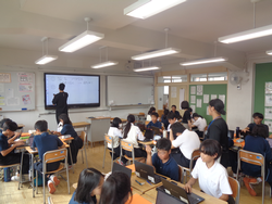 C組授業の様子(国語) 夏休みも明け、C組でも通常の授業が始まっています。国語の時間では、夏休みの日記を基に学習を進めています。自分で夏休みの日記を一日分選び、文章の書き方のポイントや正しい日本語で書くことを学びながら、タブレットに入力しました。多くの生徒が充実した夏休みを過ごしていたようです。(9/4 10:00更新) |