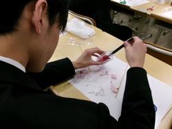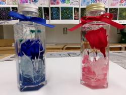 ハーバリウム制作 講師の先生をお招きし、3年生は、赤や青を基調としたハーバリウム制作に取り組みました。アジサイやカスミソウのプリザーブドフラワーを用い、色彩豊かな美しい作品が完成しました。生徒たちは、思い出に残る作品にしようと、それぞれが工夫を凝らしながら真剣に制作に取り組んでいました。(3/9 11:24更新) |