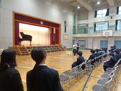 全校朝礼 校長先生からは以下2点についてお話がありました。 1つ目は、ミラノ・コルティナオリンピックについてのお話です。私たちは結果に目が向きがちですが、オリンピック選手は長い時間をかけた練習や、怪我などの困難を乗り越えてその舞台に立っています。校長先生は、結果はもちろん大切である一方で、そこに至るまでの過程や日々の努力が将来につながると話されました。学校生活においても、学習発表会に向けた準備や、三年生の受験勉強など、日々の積み重ねを大切にしてほしいとのことでした。 2つ目は東京ドームでWBC(ワールド・ベースボール・クラシック)を観戦する機会を生徒がいただいたことです。世界で活躍する選手たちのプレーを間近で見る貴重な経験となります。 引き続き、表彰も行われました。これは、日々の努力を積み重ねてきた生徒一人ひとりの成果を称えるものとなりました。 |