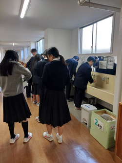 3月の避難訓練 本日、3月の避難訓練を行いました。3学期の避難訓練では、生徒への事前周知および、月予定への掲載はしないで行っています。本日は2校時が終了した直後にサイレンが鳴りました。中には、保健体育の授業が終わり、着替えているクラスもありましたが、素早く行動し、服装もきちんとしていました。他のクラスも、すぐに行動し、校庭へ整列しました。 講評では、「大人がいない時に、どのように行動するかが大切」とありました。生徒は、いつ如何なる時にも、冷静に判断し行動することの大切さを感じたと思います。 訓練後は校舎に戻る際、毎回、生活委員がぞうきんを準備し、上履きを綺麗にしていきます。生活委員も頑張っています。 災害はないことがもちろんいいです。しかし、何かあった時には、本日の訓練通りに行動してくれることを願います。 (3/ 5 13:50更新) |