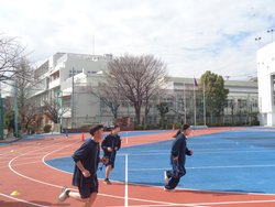 | C組授業の様子(保健体育) 保健体育の授業では長距離走に取り組んでいます。はじめの4時間は8分間走に取り組み、一定のペースで走ることの大切さを学びました。今は一人一人に合った距離(1000m・1500mなど)のタイムを計測しています。自己ベストを更新する喜びを味わいながら、授業に取り組んでいます。 (2/4 9:40更新) |