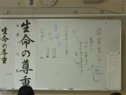 来年へ向けて 国語科の授業では、書き初めの練習が始まっています。 写真のように、各学年とも2つの課題から1つを選ぶことになります。各学年とも、両方の課題を練習した後、書き初めを行います。3年では、「生命の尊重」の授業をしています。半紙に別々に練習した後、書き初め用紙に書いていきます。一文字一文字に集中し、丁寧に書いていました。 2025年、今年が終わるのは、まだ1ヶ月先と思っていると、あっという間に過ぎていきます。一つ一つ、今年のことを終わらせていくように頑張っていきましょう。 (11/27 13:50更新) |