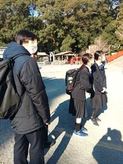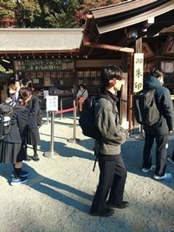 「いざ鎌倉!~つかもう責任感、高めよう探究心~」のスローガンのもと校外学習に出掛けています。すっきりとした冬晴れの中、各班が設定したルートで行動しています。これまで順調に進んでいるようです!妙本寺では、素敵な風景の中ご結婚カップルの写真撮影があちらこちらで観られました。(12/11 12:30更新)