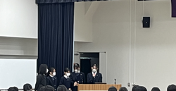 各クラスからの日頃の反省と後期の目標が発表された後、生徒会長を始め、専門委員会の委員長になった生徒が、それぞれの決意を述べていきました。1年生から同じ委員会で仕事をしてきた生徒も多く、先頭に立って、学校を牽引してくれると思います。