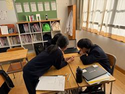 今週から、3年生はESAT-J(スピーキングテスト)の練習に励んでいます。先生を相手に練習をしたり、ヘッドセットと音読アプリを使って発音を良くしたりと、それぞれの方法で取り組んでいます。ここでの練習はESAT-Jだけでなく、高校での英語の学習や英検の2次試験など、多くの場面で役立つでしょう。(10/10 16:53 更新)