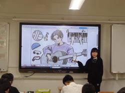 生徒たちは、紹介したい友達や家族・親戚、先生を選び、その人の魅力を伝える英文を工夫しながら考え、練習を重ねてきました。さらに、似顔絵やイラストを描き、それを電子黒板に映しながらジェスチャーを交えて紹介しました。1学期よりもパワーアップした発表に笑顔があふれ、充実した時間となりました。