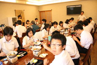 | 朝食の様子 | 朝食の様子 | 3日間使った学園を皆で清掃! |