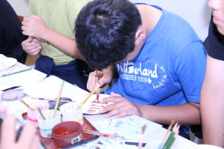 | 夕食後、お皿の絵付けに行きました | 絵付け中 | 完成が楽しみです |