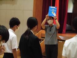 図書セット受贈 公務員弘済会より図書セットが贈呈され、昨日、目録が土井校長に渡されました。「10代からの哲学図鑑」「世界の神話大図鑑」「星座の図鑑」など21点、大変価値のある高価なものです。ページを開くたびにドキドキします。図書館でじっくりと読んでください。(7/14 13:30更新) |