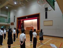 終業式 今日は終業式の日です。式では、先生方から様々なお話を頂きました。校長先生からは、性暴力防止の取り組みの紹介や呼びかけについてお話しして頂きました。生活指導主任の先生からは1学期の生活のふり返りや夏休みの過ごし方についてがありました。体育の先生からは、学習教室や水泳教室の際の注意事項や、健康管理についてお話を聞かせて頂きました。 |