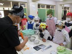 C組 調理実習 本日、今年度二回目の調理実習を行いました。今回作ったのは野菜炒めです。まずは「短冊切り」や「ざく切り」など、いろいろな切り方を覚えながら、キャベツやニンジン、ピーマンなどを切りました。また、全ての具材にまんべんなく火がとおるよう、野菜の入れる順番や炒め方も学習し、実践しました。自分で作った野菜炒めの味は格別のようで、あっという間に完食していました。(11/10 15:45更新) |
