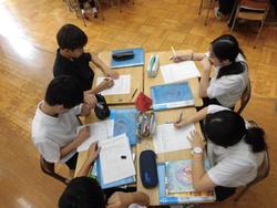 校内研修 他 本校は今年度、文京区研究協力校として、『主体的に学ぶ意欲を高める指導の工夫~地域の教育資源を活用した探究的な学習の実現を通して~』を主題とした研究を進めています。今日はその一環で、教科の授業における、学習の基盤となる資質・能力の育成を図る授業改善について、グループごとに話し合いをしました。 |