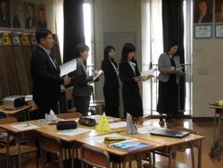音楽 指導教諭授業 3年A組の5時間目は、他校の多くの先生方に来ていただき、T指導教諭が授業を行いました。題材は「信じる」をより良く合唱するために、表現を工夫しようというもの。生徒は、曲の構造や曲想を感じ取り、良い表現になるよう班で話し合い、実際に歌うという流れで学習を進めました。ひとりひとりが、みんなで歌い作り上げていく喜びを感じ取っているように思いました。それにしても、頭を使う音楽の授業でした。(5/28 14:56更新) |