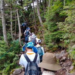 八ヶ岳移動教室 2日目 登山 バスガイドさんからは、武田信玄やほうとうのお話を聞きながら、爽やかな高原の道を通って北八ヶ岳ロープウェイへ。そして坪庭から北横岳山頂へ到着し昼食。途中、毒キノコを見たり、帽子に蝶が停まったりしたことも、良い思い出となりました。(9/5 16:43 更新) |
