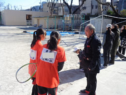 1年生女子ブロック大会 ソフトテニス部 昨年11月末に開催された文京区ソフトテニス学年別大会を勝ち上がった1年生の2ペアが、昨日、第4ブロック1年生代表大会に出場しました。2ペアのうち、1ペアがベスト8まで勝ち上がりました。風が吹く中の難しい試合運びでしたが、選手ははつらつとプレーしていました。現在の学年での試合は、3月実施予定の試合を残すのみとなりました。まだまだ寒い中での練習が続きますが、引き続き応援をよろしくお願いします。 |