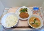 2月16日(月)ご飯、肉じゃがコロッケ、野菜の磯辺和え、かみなり汁、牛乳