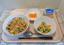 2月24日(火)ご飯、イカのチリソース、春雨サラダ、中華スープ、牛乳