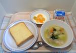 ビスキュイトースト、ポトフ、フルーツヨーグルト、牛乳