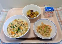 9月24日(水)かきたまうどん、大根サラダ、大学芋、牛乳