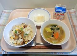 10月10日(金)キムチチャーハン、チャプチェ、鶏肉のスープ、牛乳