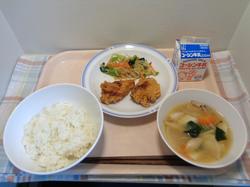 11月10日(月)ご飯、とり天、野菜のかぼす和え、団子汁、牛乳