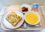 11月18日(火)ごまツナマヨトースト、レバポテビーンズ マリアナソース、パンプキンスープ、牛乳