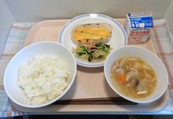 10月20日(月)ご飯、卵焼き、野菜の辛し和え、みそ汁、牛乳
