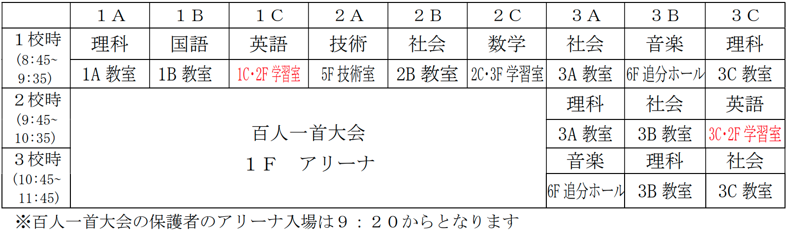 1 日 時 令和8年1月17日(土) 受付開始時刻 8:40~ 1階生徒下駄箱奥
