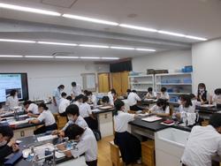 毎年夏に東大本郷キャンパスを会場に実施されている「創造性の育成塾」では、一流科学者による講義と実験名人の先生たちの実験などが展開されています。本校は、昨年度に引き続き、実験会場として理科室を提供しています。前述の「実験名人の先生たちの実験」について、夏期チャレンジプログラムの一環として、7/31(月)~8/2(水)午前中、本校生徒を対象に同内容を実施していただいています。実験教室C「カタチから探る動物の暮らし」(本校理科教員)、D「観察の大切さ・モデル実験で広がる創造性」(練馬区立学校教員)、E「空気と水の実験」(私立高校教員)、F「身の回りでは体験できない状態変化~液晶と過冷却~」(都立中等教育学校教員) 本校生徒は熱心に実験を行っていました。 ( )内は担当講師、写真左からD、E、Fの様子。