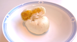 さて、今回の「かぼちゃまんじゅう」についていうと、まんじゅう自体は1年を通して食べられているお菓子です。ですが、まんじゅうにも季節を感じさせる工夫があります。春は桜餡、秋には栗やさつまいもを使うこともあります。今回は12月ということで冬至を感じさせるかぼちゃ餡を使いました。