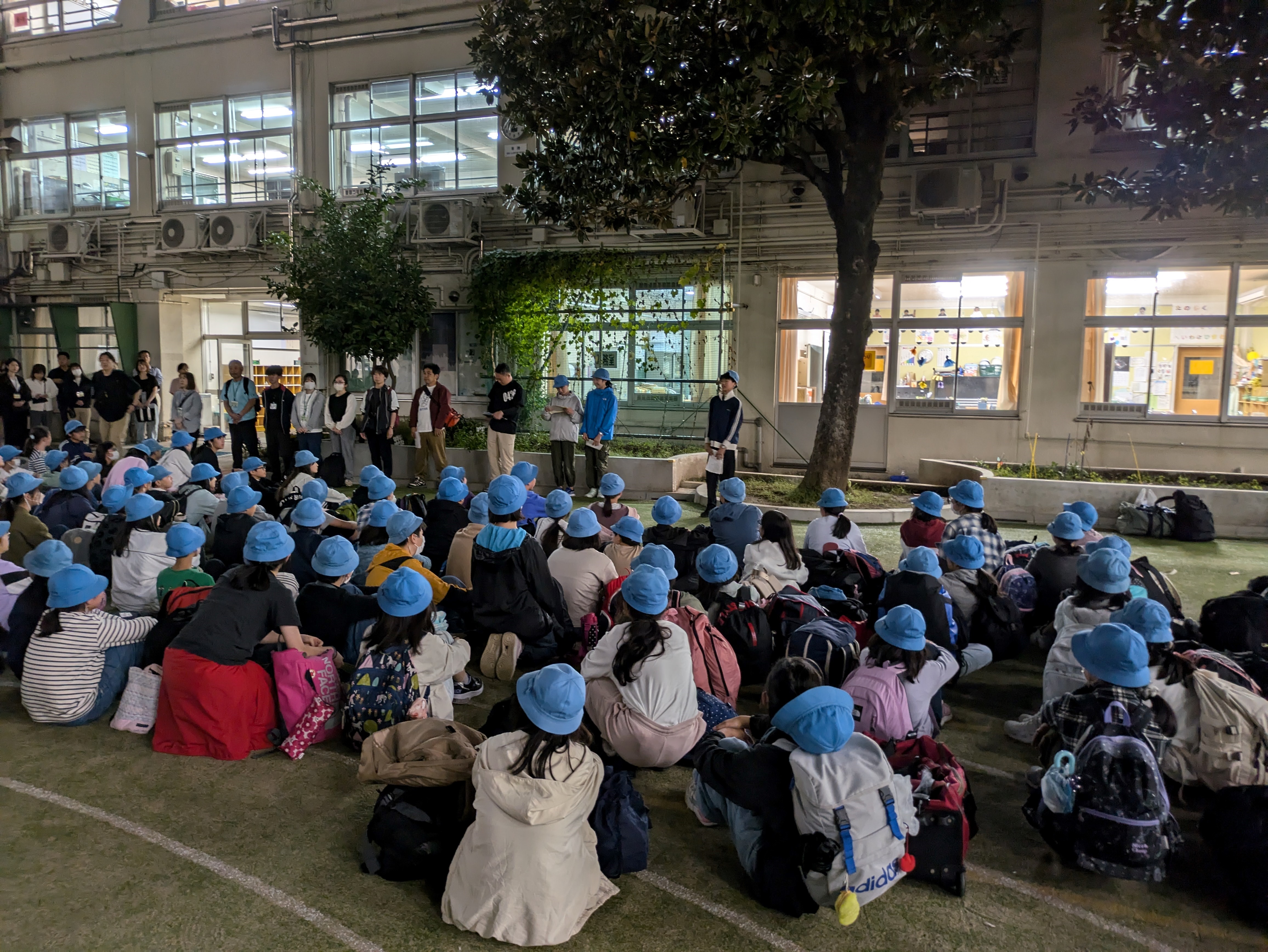 バスの到着が遅れ日が沈んでしまいましたが、ついに学校に帰ってきました。