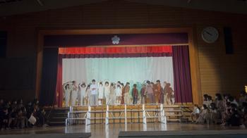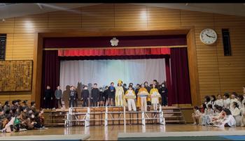 三年生は、うさぎ、たぬき、おおかみの3チームでダンス大会をする「まん月おどり大会」という劇を行いました。踊る曲やダンスの動きを自分で考えながら意欲的に取り組むことができました。回数を重ねるごとに身振りや体の向きにも工夫が見られ、日常生活の中でも劇中のせりふを使うほどに楽しんで活動することができました。