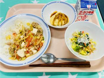今日は、本校の教職員おすすめの料理「焼きまんじゅう」を給食にアレンジして提供しました。