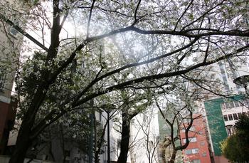 一年間子供たちの様子を見守っていた桜の樹も大きく花を咲かせています。