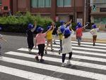 1年生の交通安全教室がありました。本富士警察署と東京交通少年団の方々に、道路の歩き方を教わりました。春日通りでの歩行訓練では、校門から歩道に出るときや横断歩道を渡るときには、左右の安全を確認してから歩くこと、横断歩道では手を上げて歩くことなどを教わりました。