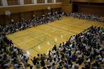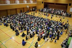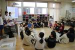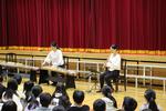 今日は4・5・6年生は邦楽鑑賞教室、6年生は実際に和楽器の演奏体験のワークショップ