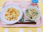 かき玉うどん 大豆とかぼちゃの甘辛揚げ 果物(小玉すいか) |