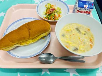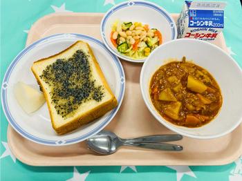 ごま 牛乳・ごまトースト・ポークシチュー・みそドレッシングサラダ・果物(梨) ごまは、ビタミンEやカルシウムを多く含む食材です。 きょうは、白ねりごまと黒すりごまをつかって、ごまトーストをつくりました。 給食では、似た料理を出すときでも食材をアレンジすることで、飽きないように工夫しています。 教室をまわると、いつもと違う見た目のごまトーストに驚く児童もいましたが、おいしく食べている様子でした。 |