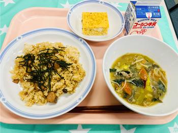 5年生が行く長野県の料理 牛乳・キムタクごはん・にら入りたまごやき・信州みその具だくさん汁 きょうは、長野県の給食で人気なメニュー、キムタクごはんを作りました。 長野県は伝統的な漬物文化が発達している地域です。 子ども達に漬物をおいしく食べてもらいたいという想いから、学校栄養士によって考案されました。 甘味と酸味のバランスがよく、食感も楽しめるごはんです。 本郷小学校の子ども達も、積極的におかわりする姿が見られました。 |